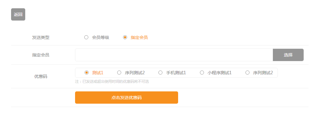 点击“发送优惠码”,如图所示: